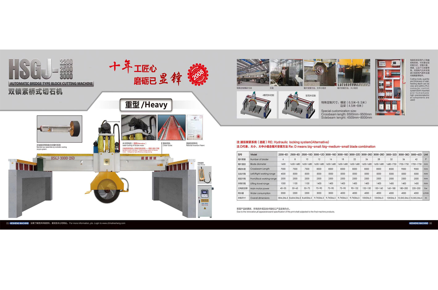 HSGJ-2200/2500/3000/3500雙鎖緊橋式切石機(jī) 【液壓橋式切石機(jī);橋式組合鋸;橋式大切機(jī)】?